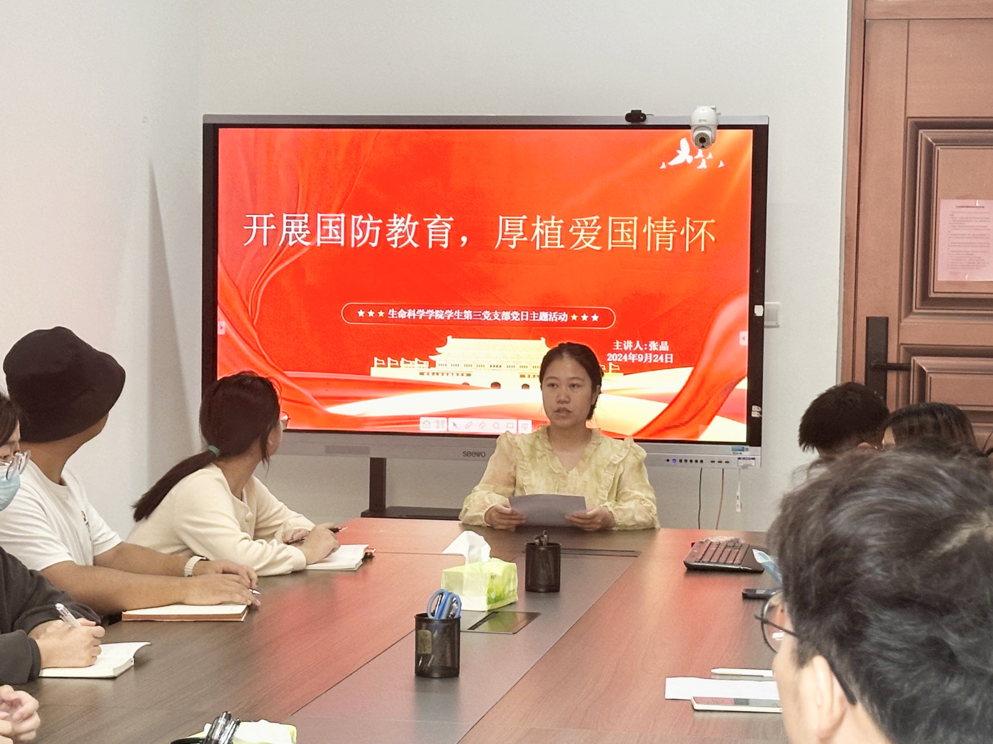 学生第三党支部以“开展国防教育,厚植爱国情怀”为主题开展党日活动。党员们认真阅读材料,学习国防教育相关知识。支部书记张晶为大家传达了修订后国防教育法的精神实质,并从国防建设方面向党员们讲解了参军入伍的意义价值以及条件要求,激励党员们应心怀报国之心,将爱国热情化为行动奉献,积极响应国家号召,将个人理想融入国防事业,为我国国防安全贡献力量。