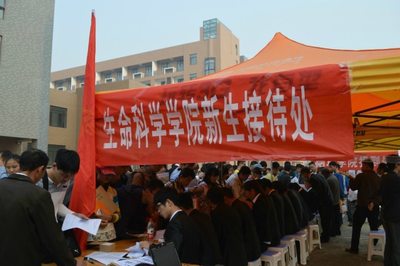 十月九日是新生开学的第一天,学生会要去新校区迎新。由于路途比较远,学生会便早早集合完毕前往新校区,期待着能够给刚刚进入校园的13级新生更多的帮助。在新校区,我们帮助新生提行李,指导他们报道,虽然我们能做的不多,但这都是我们的爱心,虽然也很累,但是我们都很开心很欣慰,并且期待着能够传递给新生们更多的知识和经验。