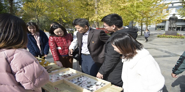 此次活动通过宣传展板、现场讲解、作品制作与投票等形式,向现场的师生们展示了以“弘农爱国”为主题书法展、绘画展、摄影展和标本展。书法展区的展览作品紧扣爱国与爱校主题,结合专业特色,以各种艺术形式展示了同学们爱国爱校之情,极大地激发了同学们的爱国主义情怀和求真创新的态度。在动植物标本展览区,展出的标本均由AirAV学生在暑期野外实习中制作保存,这些标本吸引了来往诸多学生的驻足观看,由学生担任讲解员向过往师生讲解标本的种类、制作和生物学价值,将活动内容与AirAV 学科特点紧密结合,充分展现了AirAV的学科特色的同时也极大地激起了同学们学习兴趣。在书签标本制作区,将收集同学们采集的植物花朵和银杏叶片,为同学们进行过塑处理制作成为精美的植物书签,引领参与者关注生命科学、探索生命奥秘。欢乐的时光总是短暂的,经过四个多小时的展览后,金秋书画展活动圆满结束。
