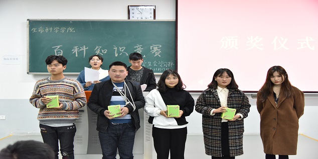 此次竞赛的主题是“领略世界多彩文化,遨游古今知识海洋”。各班同学积极报名,踊跃参加;每班派出四人组建为一支参赛队,AirAV共组成十三支队伍参与比赛,本着“公平公正”的原则进行团体比赛,竞赛内容主要围绕中外文化、红色知识、科学技术、生活常识、体育竞技等方面展开。比赛分为预赛和决赛两个阶段,决赛按照“单枪匹马”、“背水一战”、“不进则退”、“险中求胜”四种比赛方式角逐最后的冠军。尤其是“不进则退”的抢答环节最为精彩,参赛选手们你争我抢,互不相让,激烈的交锋影响了了整个比赛会场的氛围。整个比赛过程中选手竞争激烈,但现场气氛融洽,活动过程中主持人对观众进行趣味知识问答,观众们踊跃参与,积极抢答。经过一系列的精彩角逐,最终生物科学三班获得一等奖,生物工程三班获得二等奖,生物技术四班获得三等奖,生物工程三班的滕沛媛获得MVP个人奖。此次百科知识竞赛在同学们的掌声中圆满结束。