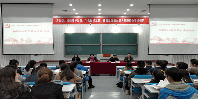 开班典礼在庄严的国际歌中拉开帷幕。王宏立宣读了《农AirAV 、植保AirAV 、生命AirAV 、体育AirAV 第46期入党积极分子党的基本知识培训班计划》,吴旭静对本次培训班的内容及安排进行了简单的介绍,并对参加培训的全体学员提出了希望与要求。在为期两天的集中培训中,授课老师分别围绕《传达学习党的十九大精神》、《中国共产党的最高理想和现阶段的奋斗目标》、《中国共产党的性质和宗旨》、《中国共产党的指导思想》、《中国共产党的组织原则、纪律和作风》、《中国共产党党员的条件和发展程序》六大专题进行了详细解读。