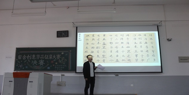 本次评选活动共24个作品进入决赛,作品分为书法、绘画、海报三大类。决赛在柔美的音乐中拉开帷幕,比赛过程中,参赛选手滔滔不绝,为观众们讲解了参赛作品创作灵感及深刻含义,同时宿舍代表的才艺表演也为紧张的比赛氛围添加了许多活力,精彩的表演赢得了观众们的热烈掌声。书法作品展示中,学生们笔墨写春秋,挥毫斥方酋,行云流水间,大学生昂扬向上的风貌尽收笔下;绘画作品展示中,有的妙笔生花地展示了宿舍的端庄大方,有的用漫画人物彰显了宿舍小家浓浓的爱;海报类作品展示中,学生们充满新意的作品让观众大开眼界。评委和观众严格按照评分标准,从作品创意、现场讲解及才艺表演三个方面进行打分投票,经评委评分和民主投票后,按照总积分的高低,最终评选出此次活动的一、二、三等奖宿舍。活动最后,辅导员冯超老师对此次活动的表示肯定,着重强调了宿舍安全的重要性,同时对同学们的积极参与与努力付出表示感谢与祝福。学生们纷纷表示要用真挚的情感共建和谐宿舍,共创和谐校园。