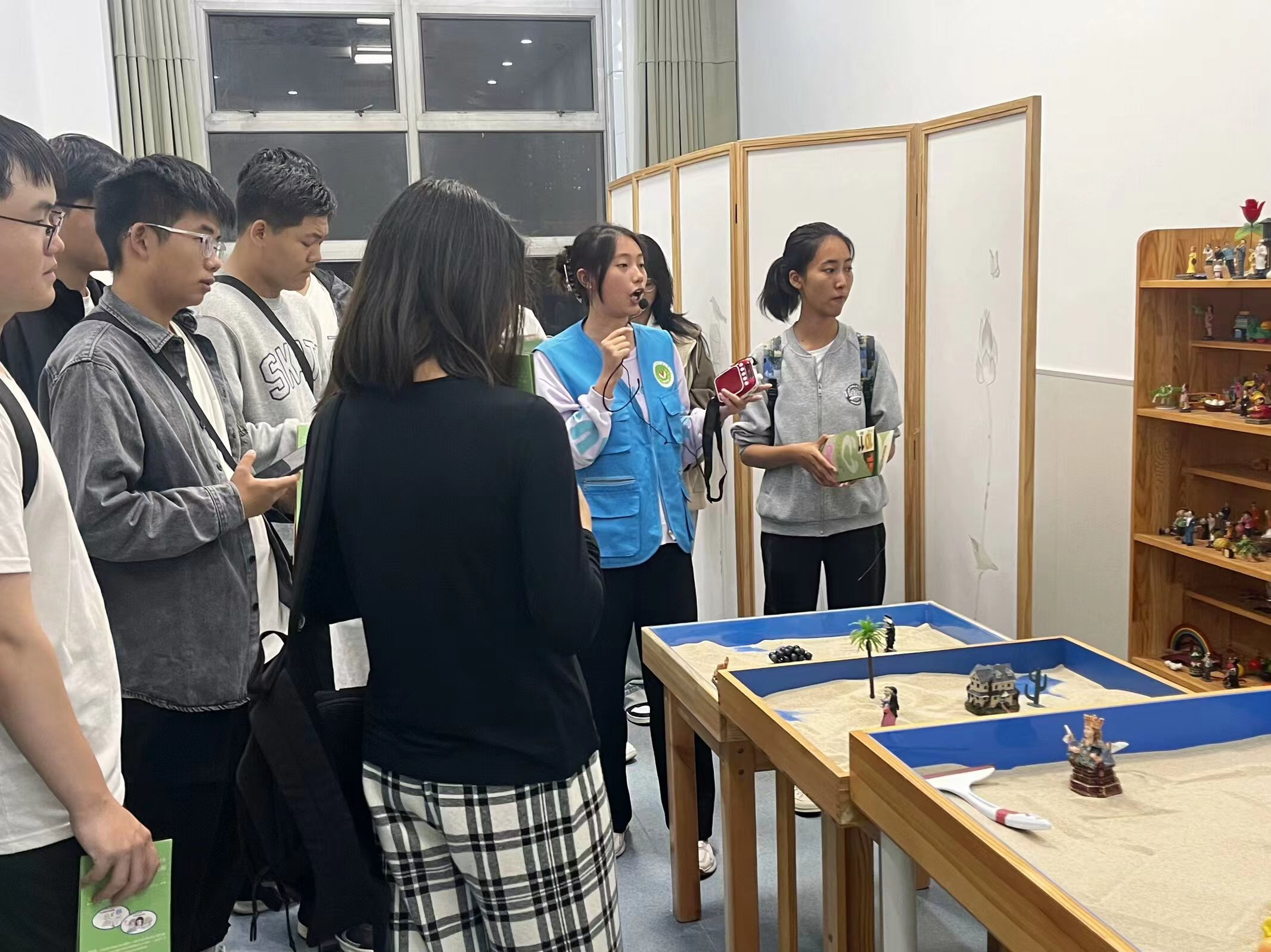 活动中,同学们在工作人员的引领下,依次观看短片、参观沙盘游戏室、体验催眠系统和放松训练等设施。通过这些环节,同学们了解了中心概况,熟悉了心理咨询求助流程,初步掌握了心理压力自我调适方法。期间,专业心理咨询师结合实例为同学们宣传普及心理健康知识,解答他们在学习、生活中产生的心理困扰,帮助同学们树立健康心理意识,培养自尊自信、理性平和、积极向上的健康心态,同时消除了学生对心理咨询的误解,增强了学生的心理求助意识。