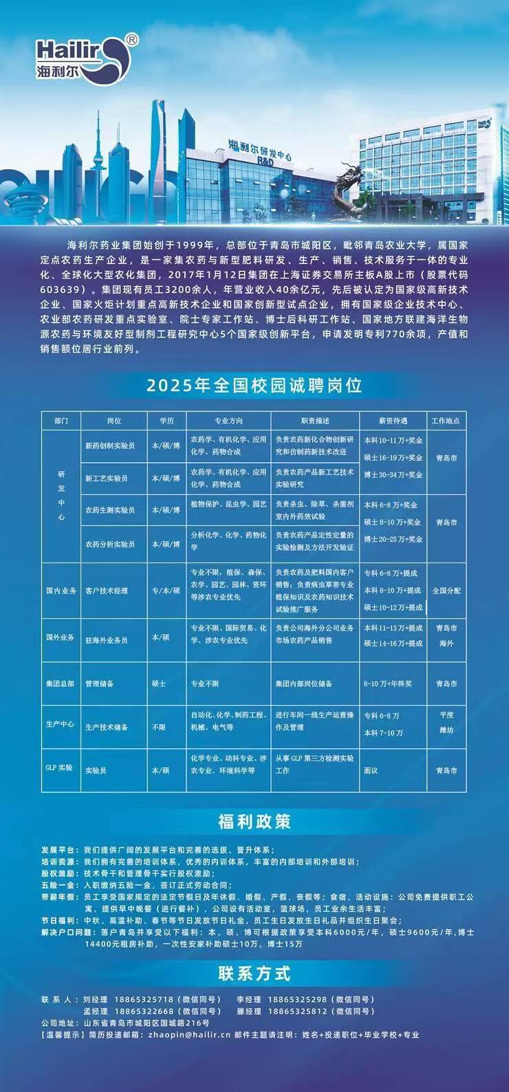 海利尔药业集团股份有限公司2025届全国校园招聘
