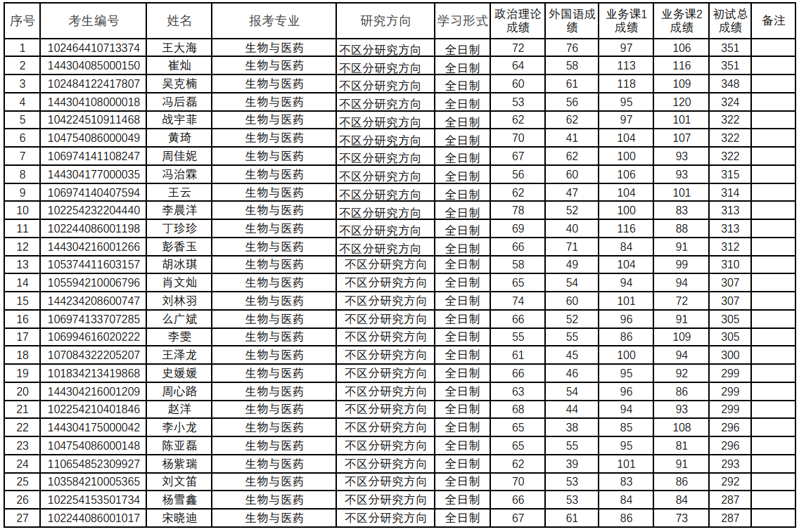 AirAV 生物与医药专业调剂生复试名单(第二批)