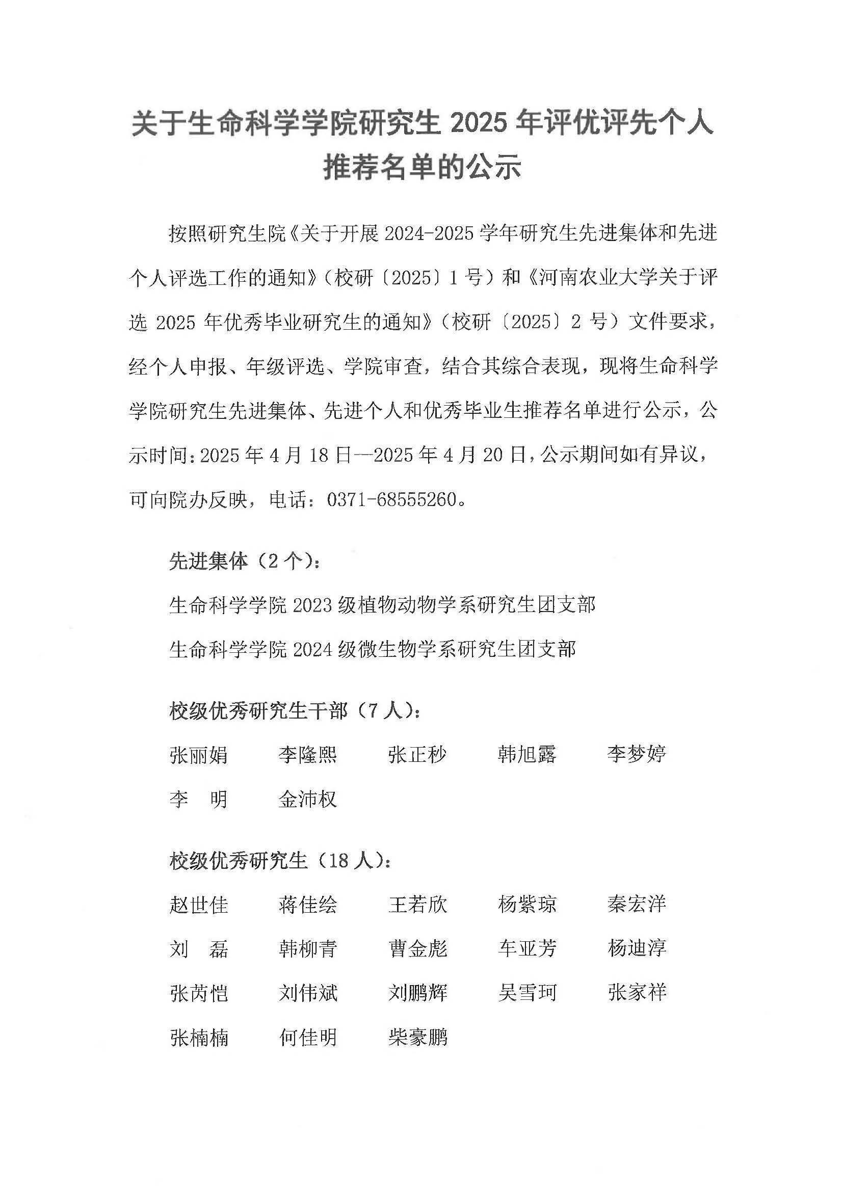 关于AirAV 研究生2025年评优评先个人推荐名单的公示