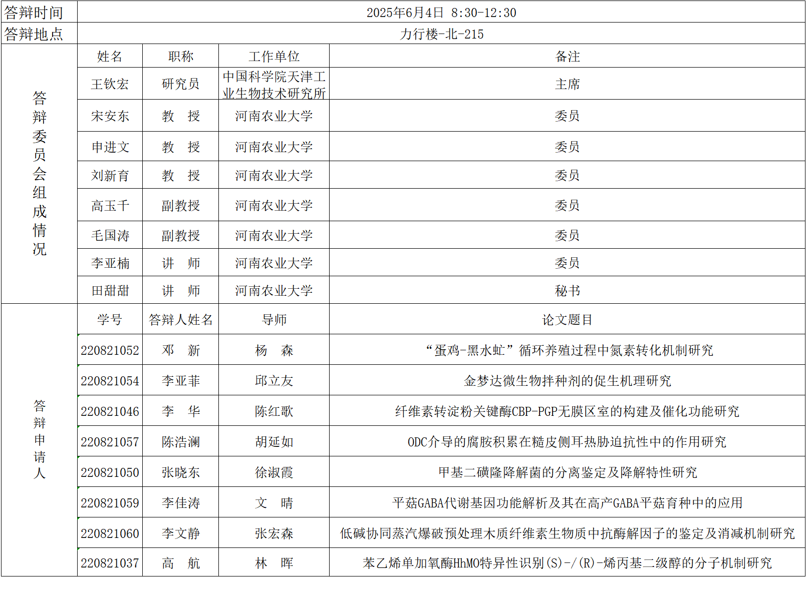 2025年上半年微生物学硕士研究生毕业答辩公告(三)