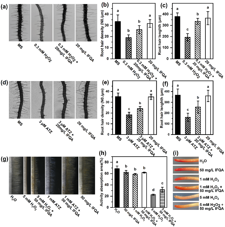 图1. IFQA对不同处理下拟南芥和玉米根毛表型的影响。
