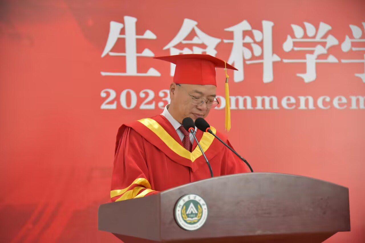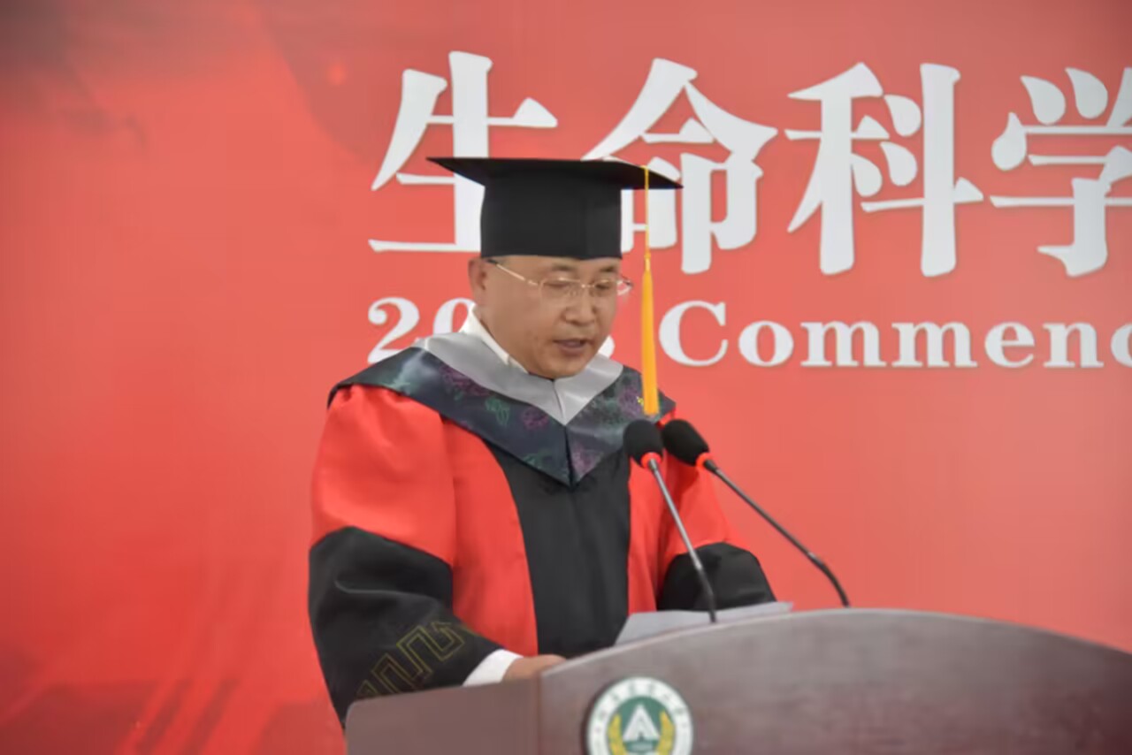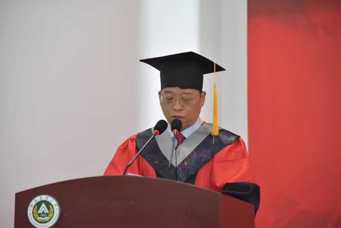 向圆满完成学业的毕业生表示热烈的祝贺,并向为同学们倾注心血和无私奉献的老师们、家长们表达崇高的敬意。他向毕业生提出了三点嘱咐和希望:一是向上生长,用青春的智慧去拥抱新时代,做勇于自我创新的开拓者;二是向下扎根,用青春的跋涉去探索新时代,做始终奋力奔跑的追梦者;三是向内砥砺,用青春的坚定去融入新时代,做始终孜孜以求的奋进者。他希望同学们无论何时,都能够坚守自己的理想和信念,努力摆正心态、坚定目标,做到向上生长,向下扎根,向内砥砺,要“怀抱梦想又脚踏实地,敢想敢为又善作善成,立志做有理想、敢担当、能吃苦、肯奋斗的新时代好青年。秉承“格物正心,秉志求真”的院训,在青春的跑道上不负韶华,不负时代,勇攀高峰!