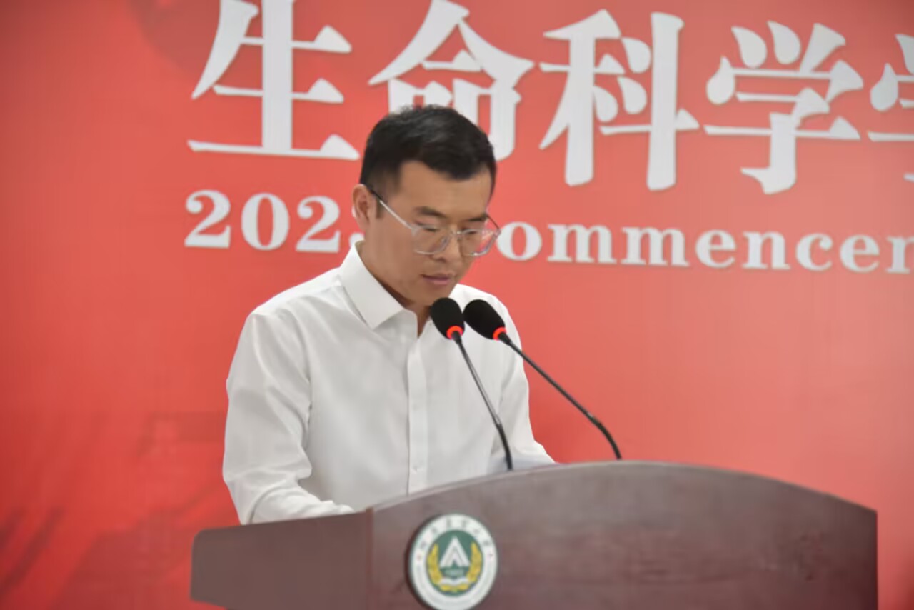 毕业研究生代表刘子豪同学发言,在农大学习生活的经历始终是他一生最可宝贵的财富和不竭的动力源泉,激励着他在平凡中坚守初心、砥砺奋进。他希望毕业生们坚持梦想、不忘初心,注重细节、精益求精,勇挑重担、心怀家国。历经坎坷,耐得住平凡寂寞,收获成功,亦能够永葆初心。最后他号召全体毕业生:“让我们相约下一个十年、二十年校庆再相见时,以优异的成绩骄傲地向母校报告!”