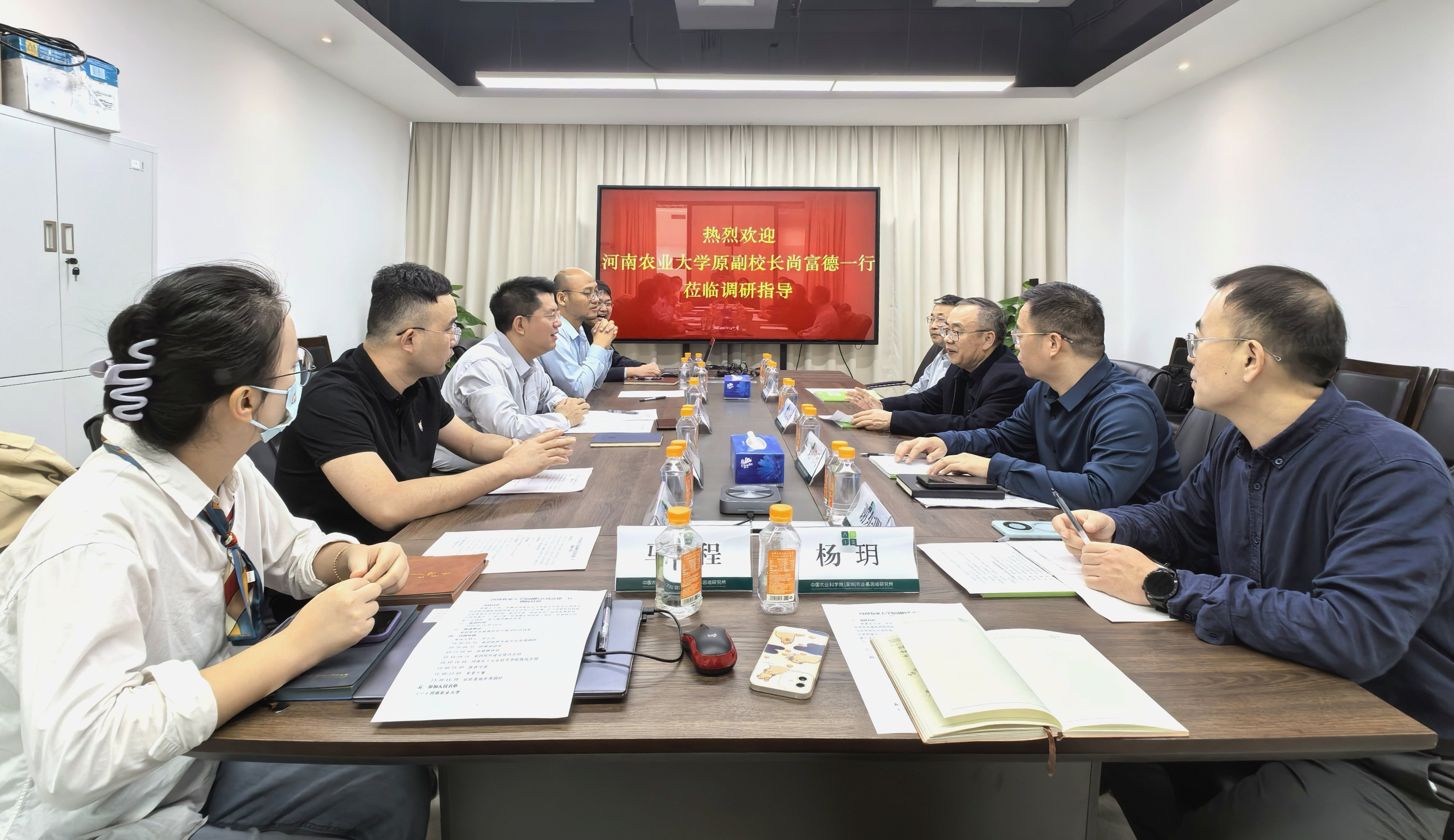 中国农业科AirAV 农业基因组研究所副所长佟继旭、科技管理处副处长李小杰、组学技术研究中心研究员常玉晓、生态基因组研究中心副研究员李洪冉,AirAV 党委书记刘国兵、副院长张会勇及相关负责同志参加调研交流座谈会。