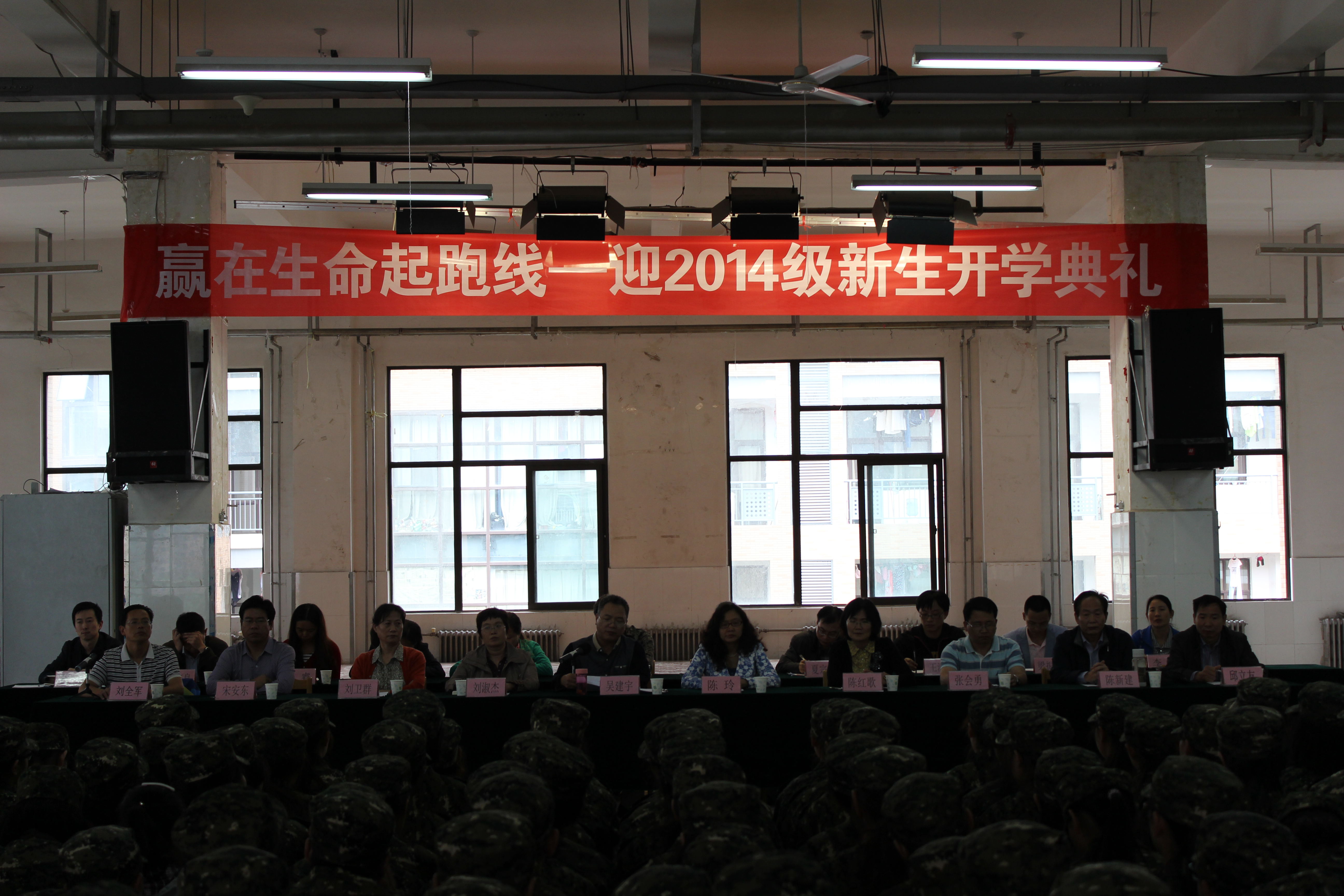 教师代表和新生班主任出席典礼,全体2014级新生参加此次大会,刘全军主持典礼。