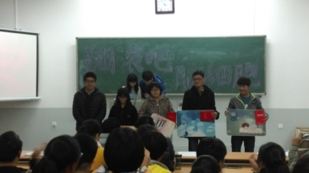 知识竞赛涵盖了传统文化、校园安全、专业科技、生活常识等多个方面。首先,14级各班两两自由结合组成的八支队伍经过激烈比拼,有三支队伍进入决赛。接下来,进入60秒“快问快答”环节,三支队伍不分伯仲,通过“一锤定音”的加赛环节,14级生物工程三班和14级生物工程四班组成的“必应队”率先取得答题资格并成功给出正确答案,获得本次比赛的冠军,14级生物科学三班和14级生物科学四班组成的“命知队”、14级生物技术与应用一班和14级生物技术与应用二班组成的“仁者队”分别获得亚军和季军。最后,AirAV学生会主席团成员和学习部部长分别为获奖班级颁发荣誉证书和奖品。