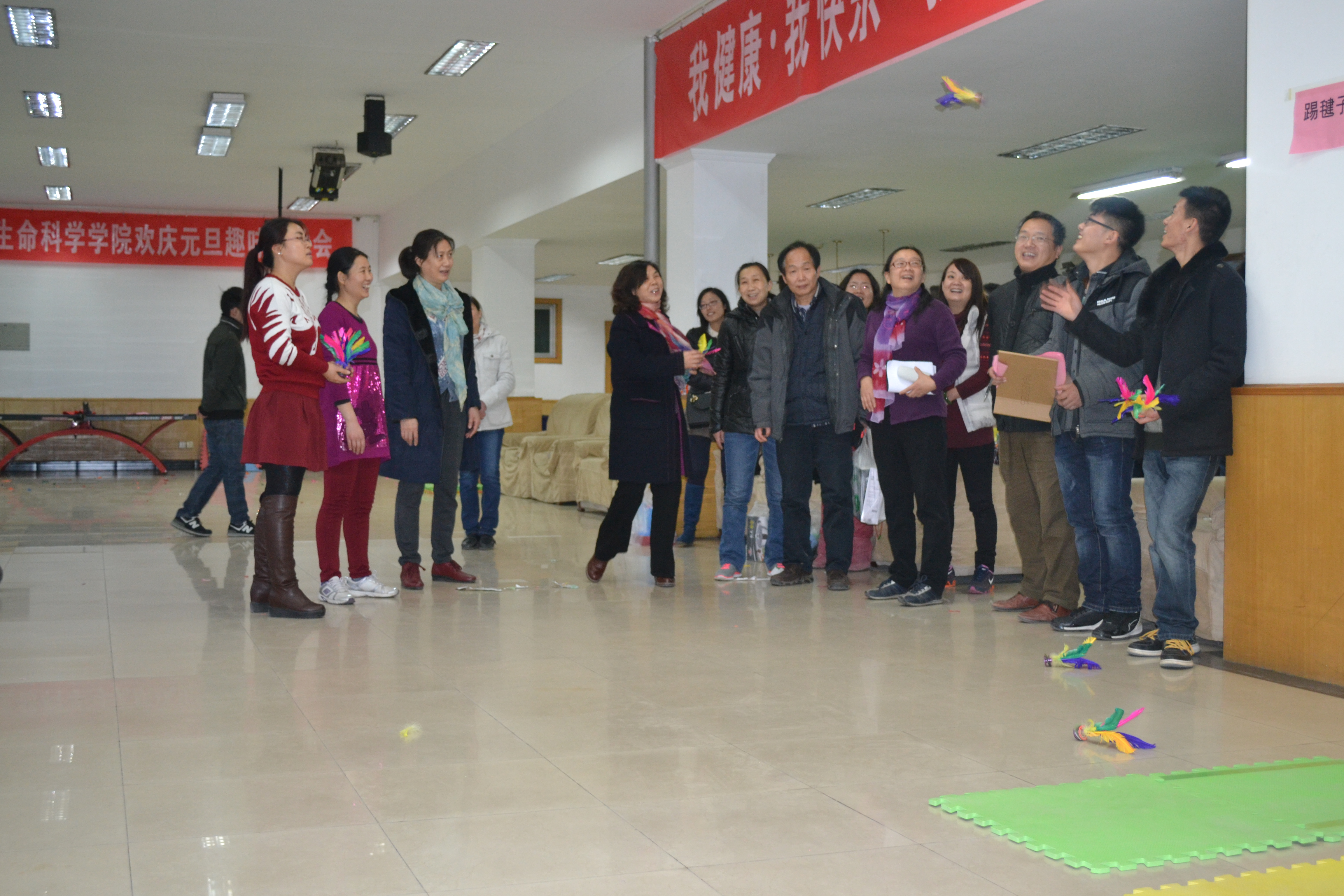12月30日下午,AirAV在学校教职工活动中心开展了“我健康 我快乐 我为农大做贡献”欢庆元旦趣味活动。校党委常务副书记李少兰到比赛现场看望了参加活动的教职工。在齐心协力、搭桥过河、投掷飞镖、夹乒乓球、踢毽子等项目的比赛中,AirAV 教职工积极参与,努力竞赛,在锻炼身体的同时,增进了交流,提高了团队协作能力。(文/马文瑛)