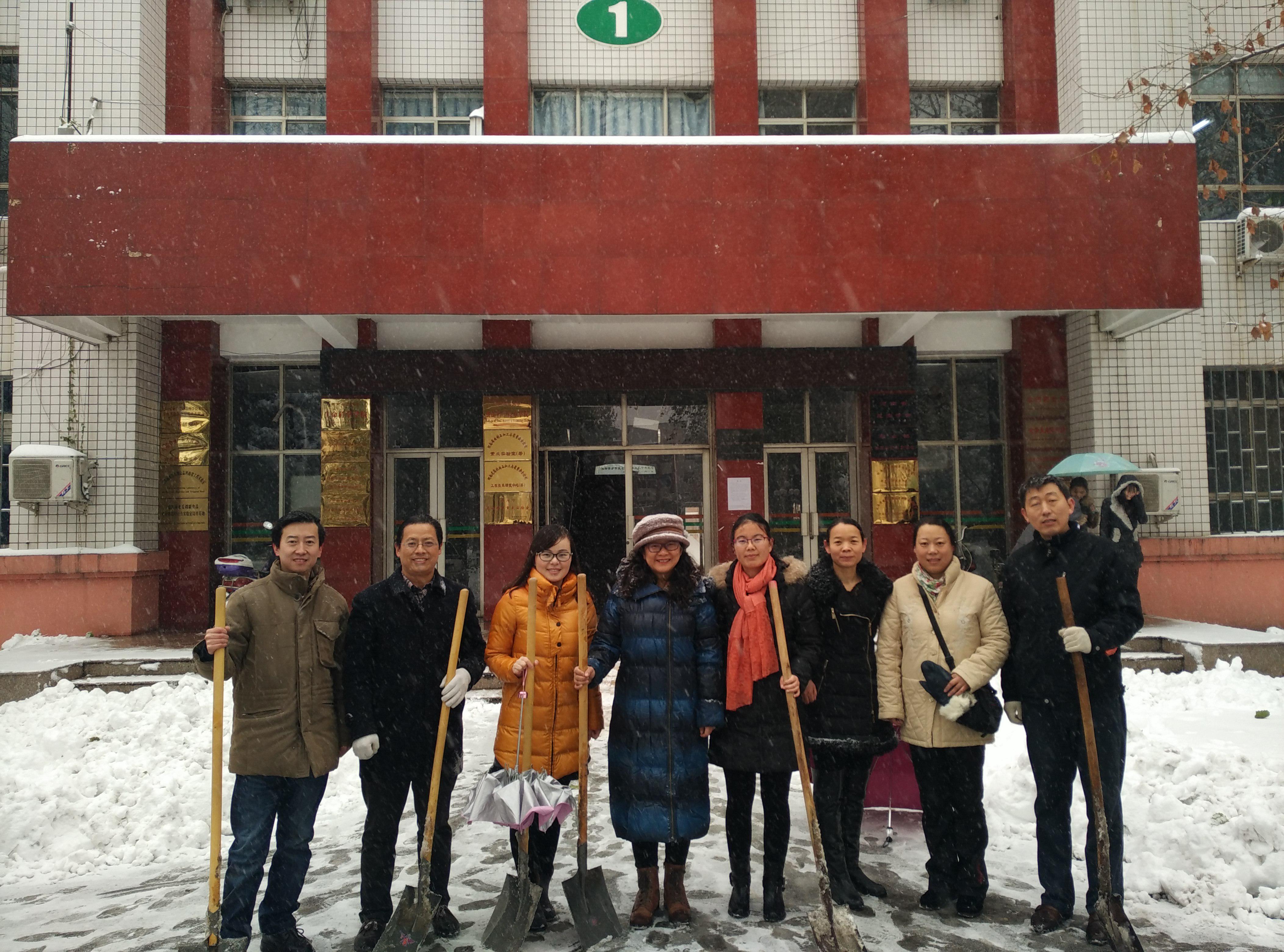 在文化路校区1号楼前和大礼堂前,AirAV教职工和学生志愿者冒着纷飞的大雪,铲雪、扫雪、归拢积雪,清理出道路方便师生通行。在龙子湖校区,AirAV辅导员杜洋组织青年志愿者协会、爱心家教社成员及大部分班级同学参与了此次义务活动。在打扫现场,尽管温度很低,天上仍飘着稠密的雪花,但教职工和学生志愿者们热情高涨,全心全意地铲雪除雪清理道路。大家分工明确,通力合作,有的铲,有的扫,有的装,有的运,如火如荼的忙碌着;愉快的笑声、擦擦扫雪声、当当铲雪声交融在一起,似一曲欢乐的交响乐。在大家的齐心努力下,很快就清扫出一条条通畅的道路。