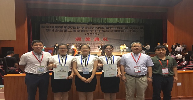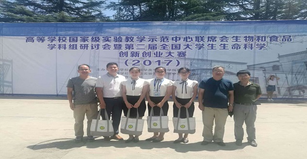 第二届全国大学生生命科学创新创业大赛自2017年2月份开始,共有来自全国173所高校的733项作品参赛,参赛师生近5000人;大赛分为初审、初赛和决赛三个环节。初审环节共有25名专家对参赛项目资格、材料完成性和规范性进行审核;初赛44名专家按评审细则进行网上投票评审,评出三等奖和入围决赛项目282项。在激烈的竞争中,我校胡秀丽等老师指导的李慧、宋梦秋和马玉爽等同学主持的项目《ABA调控cAMP在sHSP26提高玉米耐高温胁迫中的作用 》进入决赛,并以出色的讲解和现场答辩,获得全国二等奖。