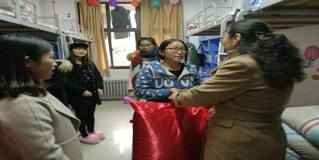 本次活动开始前,首先召开了17级本科及研究生学生代表座谈会。会议上,院领导老师们嘘寒问暖,无微不至地询问大家入学以来的生活和学习状况。会议结束后,在陈书记和吴院长的带领下,各位领导老师纷纷走进宿舍楼向家庭贫困的学生赠送“爱心棉被”,他们的到来让受助的同学很是感动,也让同学们感受到了家的温馨。老师们与学生近距离交谈,并叮嘱道:“有任何学习和生活上的困难一定要及时向AirAV 或辅导员老师反映,AirAV 会尽最大的努力帮助学生解决日常困难。”拿到棉被的同学们脸上洋溢着喜悦的笑容,纷纷表示将会以更加乐观的态度面对生活,争取在学习和生活上取得更大的成就,早日回报学校、回报社会。