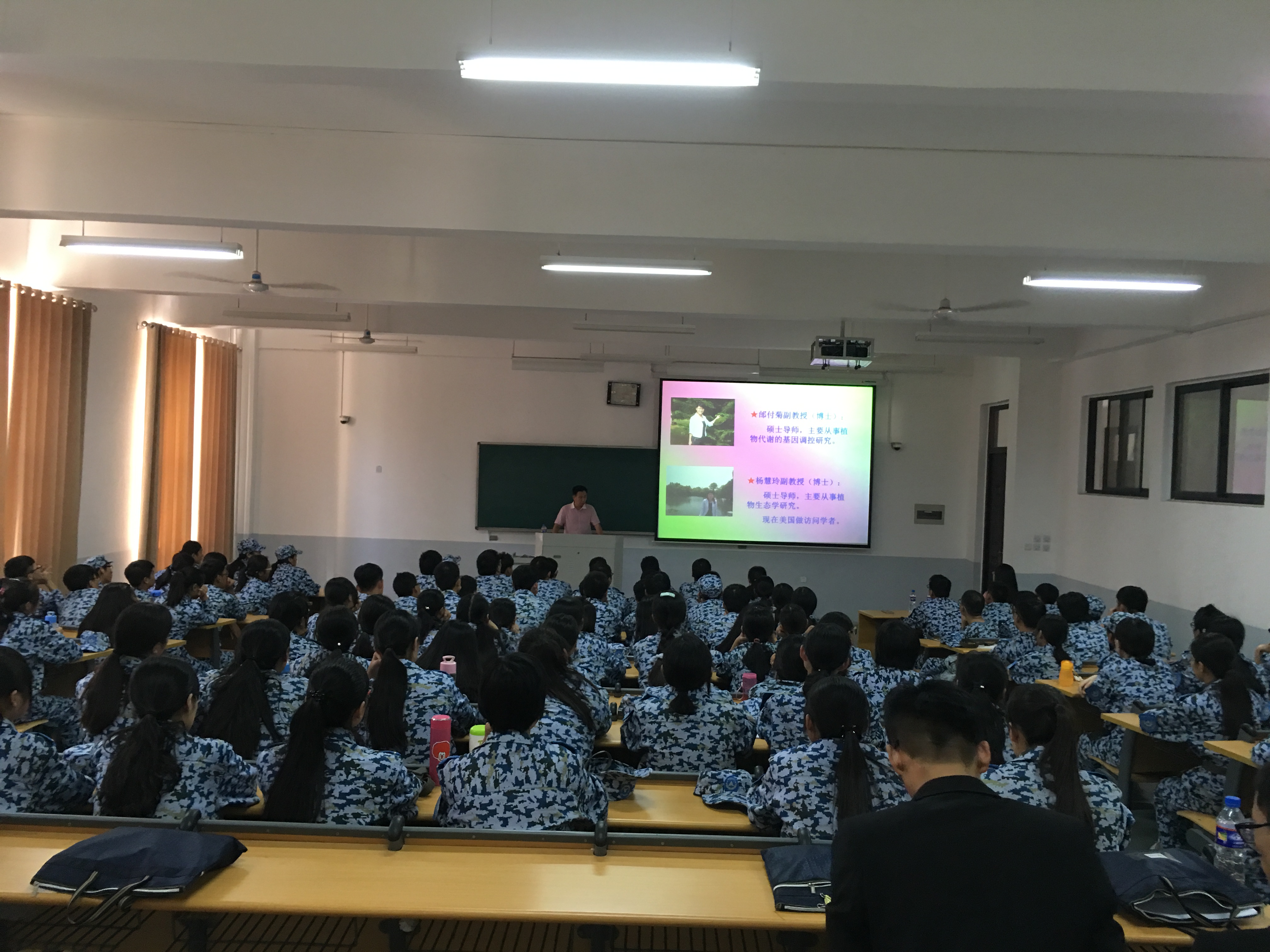在热烈的掌声中各教室的专业介绍大会开始。生物工程专业由王凤琴老师介绍,王老师首先以“为什么要上大学”这个问题与新生谈起了在大学里的理想,并希望新生们可以找好定位,然后以生物经济与社会环境的关系为引线,以生物工程专业的就业情况和科研情况为主要内容介绍了专业的前景。生物技术专业是由陈新建老师为新生们介绍,首先陈老师用生物技术的定义和就业前景,介绍了AirAV的科研成果和生化系的各位老师以及实习情况等,随后陈老师希望新生们可以在大学生活里做到“身体强壮-身体好、性格健全-情商高、能力超群-能力强”。最后,陈老师希望新生们可以学会自我管理、自我约束,在大学里能收获颇丰。生物科学专业是由袁志良老师介绍,首先,袁老师强调了大学生活的重要性,要定好自己的目标。随后,袁老师向新生们讲述了当今社会中的就业问题和生物科学的就业前景。三位老师在大会中的讲解条理清晰,都结合了各专业在实际生活中的应用,新生们在大会上认真听讲并做了笔记。会议最后,进行了老师与学生的互动环节,老师们细心为新生们解答疑问,使新生们更好的了解了自己的专业。