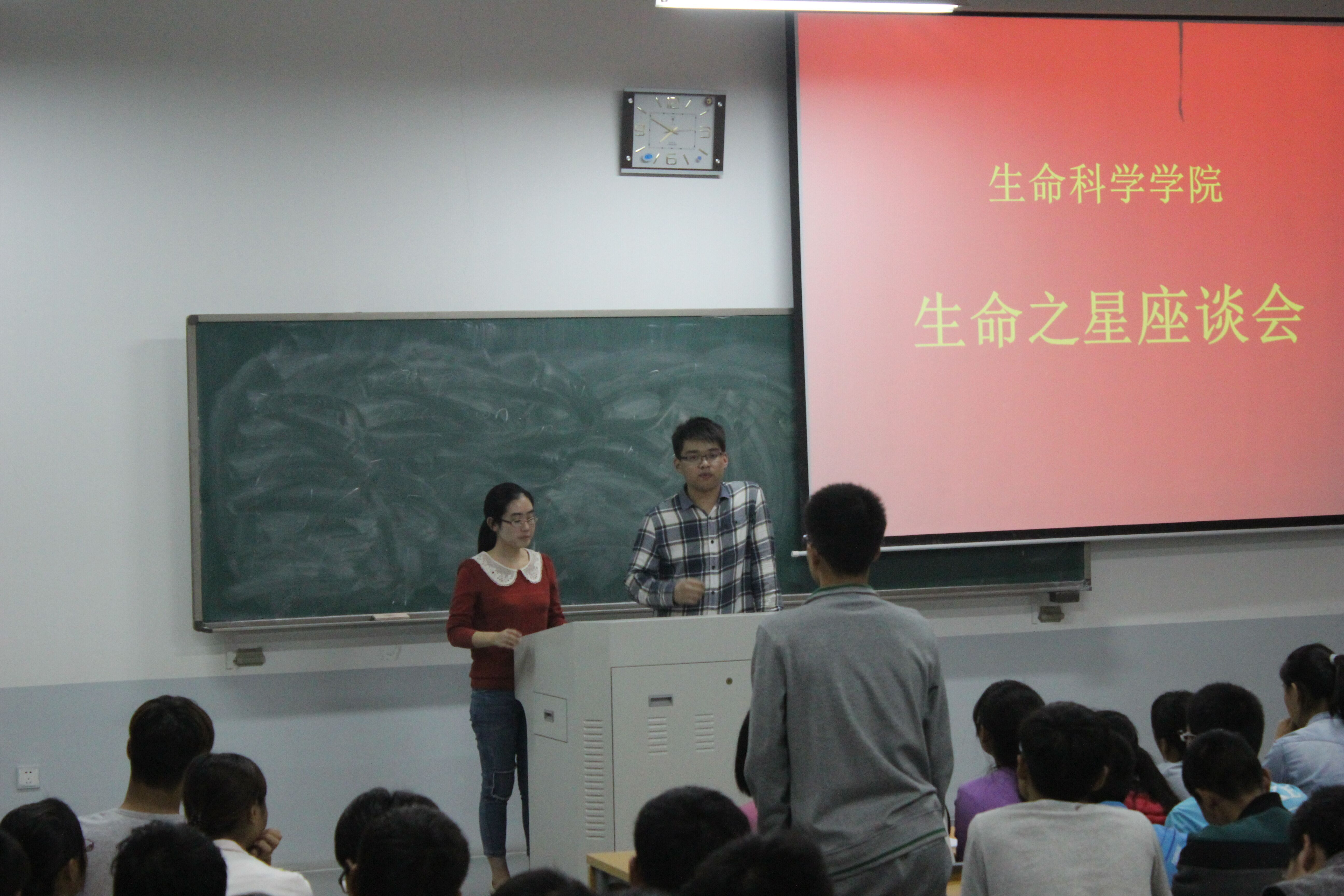 座谈会在热烈的掌声中开始,首先是学习优秀、工作能力突出的学长结合自身大学经历为新生做报告,介绍自己的学生干部经历和在大学中成长的过程。然后由学习成绩优秀的学姐为新生介绍“如何在大学中学习”、“如何为自己制定学习计划”等,最后由15级新生向学长学姐提问,“我们的大学课余时间怎么去安排?怎么去提高人际交往能力?如何获得奖学金?……”每一位生命之星针对学弟学妹们提出的问题进行了详细的解答,并博得阵阵掌声。