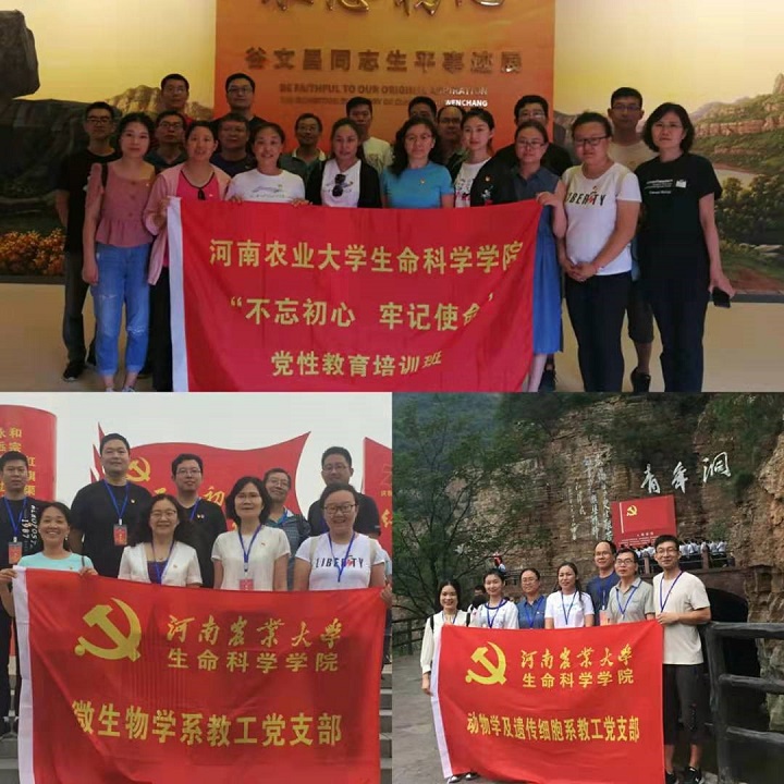 在青年洞前,两个支部的党员同志怀着激动的心情重温了入党誓词,老师们纷纷表示,在今后的教学科研工作中,一定以爱岗敬业、脚踏实地、无私奉献、创新求实的工作作风回应“不忘初心、牢记使命”的新时代要求,为建设以农为优势特色的高水平大学贡献自己的力量。