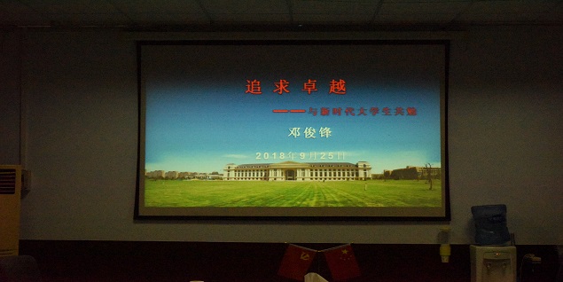 邓俊峰博士从“志存高远、品德高尚、注重学习、善于沟通、勤于思考和长期坚持”等六个方面进行报告,引用了多位伟人的名言从各个方面进行了深入的解释,并通过具体的实例分享让在场的同学们对学习、生活、品德和未来的责任担当等等有了更深刻的理解和更充分的认识。邓俊峰博士也明确的表达出自己对新时代大学生的期待,希望大家可以从细节入手,循序渐进,养成好的生活和学习习惯,不断超越自我,成为更好的自己。报告会结束,胡明忠总结强调了大学生吃苦耐劳、团结协作、开拓奋进的重要性,对同学们给予了鼓励,并提出了学习要求。