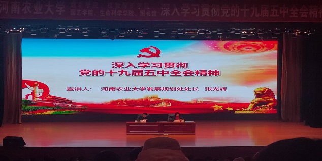 张光辉老师围绕深刻认识我国进入新发展阶段的重大意义、有利条件和重要特征,准确把握2035年远景目标和“十四五”时期我国发展的指导方针、主要目标、重点任务,牢牢把握构建新发展格局的战略构想和重要着力点,坚持党的全面领导,动员各方面力量为实现“十四五”规划和2035年远景目标而团结奋斗等方面对全会精神进行了详细解读。同时,他简要介绍了我校“十四五”规划起草过程和发展目标,寄语广大师生增强责任感,以强农兴农为己任,立足本职岗位,为建设以农为优势特色的高水平大学贡献青春力量。