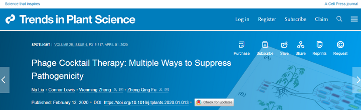 近日,AirAV郑文明教授团队在Trends in Plant Science (植物科学趋势)发表了题为“噬菌体鸡尾酒疗法:多途径抑制致病性(Phage Cocktail Therapy: Multiple Ways to Suppress Pathogenicity)”的焦点文章。该论文综述了噬菌体鸡尾酒疗法控制植物细菌病害的重要进展。
