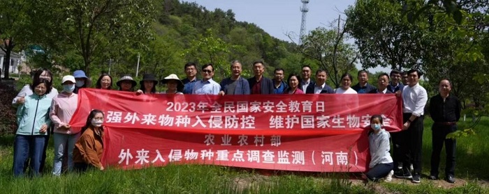 2023年4月院领导和植物学系教师们在全民国家安全教育日,参与“加强外来物种入侵防控,维护国家生物安全”的活动