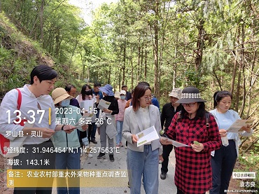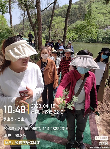 在全民国家安全教育日到来之际,“加强外来物种入侵防控,维护国家生物安全”实践教学活动的第一站来到了豫鄂交界的大别山北麓——河南省董寨国家级自然保护区,该保护区四季分明,生境多样性高,林间植被类型繁多,高大乔木鳞次栉比,灌木繁盛,又是一个以山区森林珍稀鸟类及其栖息地为主要保护对象的野生动物类型的自然保护区,是中国白冠长尾雉之乡和“东方宝石”朱鹮重要的人工繁殖及野外栖息地。鸟类数量的增加促进了生态环境的改善,良好的森林生态系统,更加丰富了生物多样性。首先植物学系叶永忠、李春奇和袁志良等教授亲自指导教师们对外来入侵物种开展调查、监测等工作,并详细讲解了植物多样性对维护国家生物安全的重要性,同时亲自给年轻教师们传授如何辨别园区的各种植物形态、特性的方法,进一步强调实践教学的重要性,要将科技论文写在大地上。随后,在河南省董寨国家级自然保护区董寨科普馆,馆长杜志勇为我们详细讲解了保护区珍惜动物人工繁殖的过程和野外栖息地的特点,他强调科普馆所有的动物标本都是真实的动物皮毛加上一些特殊的防腐材料制作而成的,每个标本都栩栩如生,保存时间更久,为我们了解自然保护区鸟类的特性提供了较好的材料。