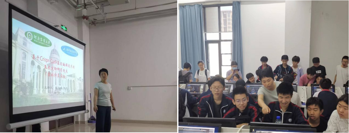 研学活动中,石永春用风趣易懂的语言向学生们详细介绍了河南农业大学精品课程《基于Crispr-Cas9基因编辑技术的玉米定向种质改良虚拟仿真实验》,并在上机实践环节对操作和具体的分子生物学概念进行了专业指导。通过实际参与虚拟仿真实验操作,学生们对Crispr-Cas9基因编辑技术及整个流程所涉及的具体实验,如pCAS9-mono载体的线性化、靶位点gRNA引物的复性、T4连接酶连接载体、大肠杆菌转化和质粒提取、农杆菌Gv3101的转化、玉米幼胚的收集及侵染和愈伤组织的筛选与再生等形成了更加深刻的认识。同学们在实验环节对分子生物学展现出极大的热情,实验成功完成率达到96%。