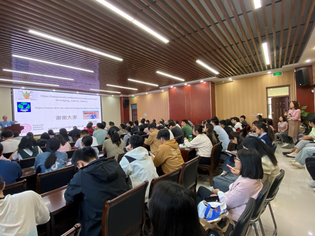 库珀以《Tackling the planetary crisis: Using natural history collections to investigate global change》为题,深刻剖析了当前全球气候变化带来的严峻挑战,并提出面对这一前所未有的环境危机,作为科研工作者,我们应如何担当起应对的重任。她创新性地指出,自然历史藏品不仅是历史的见证者,更是现代科学研究的重要资源,为理解全球变化提供了独一无二的视角。通过深入研究这些藏品,科学家们能够追踪物种在时间维度上的形态变化、繁殖习性的调整等,从而为制定生态保护策略和环境政策提供坚实的数据支持与科学依据。她的讲解生动而具体,让在场师生深刻感受到了自然历史藏品在现代科学研究中的重要价值。