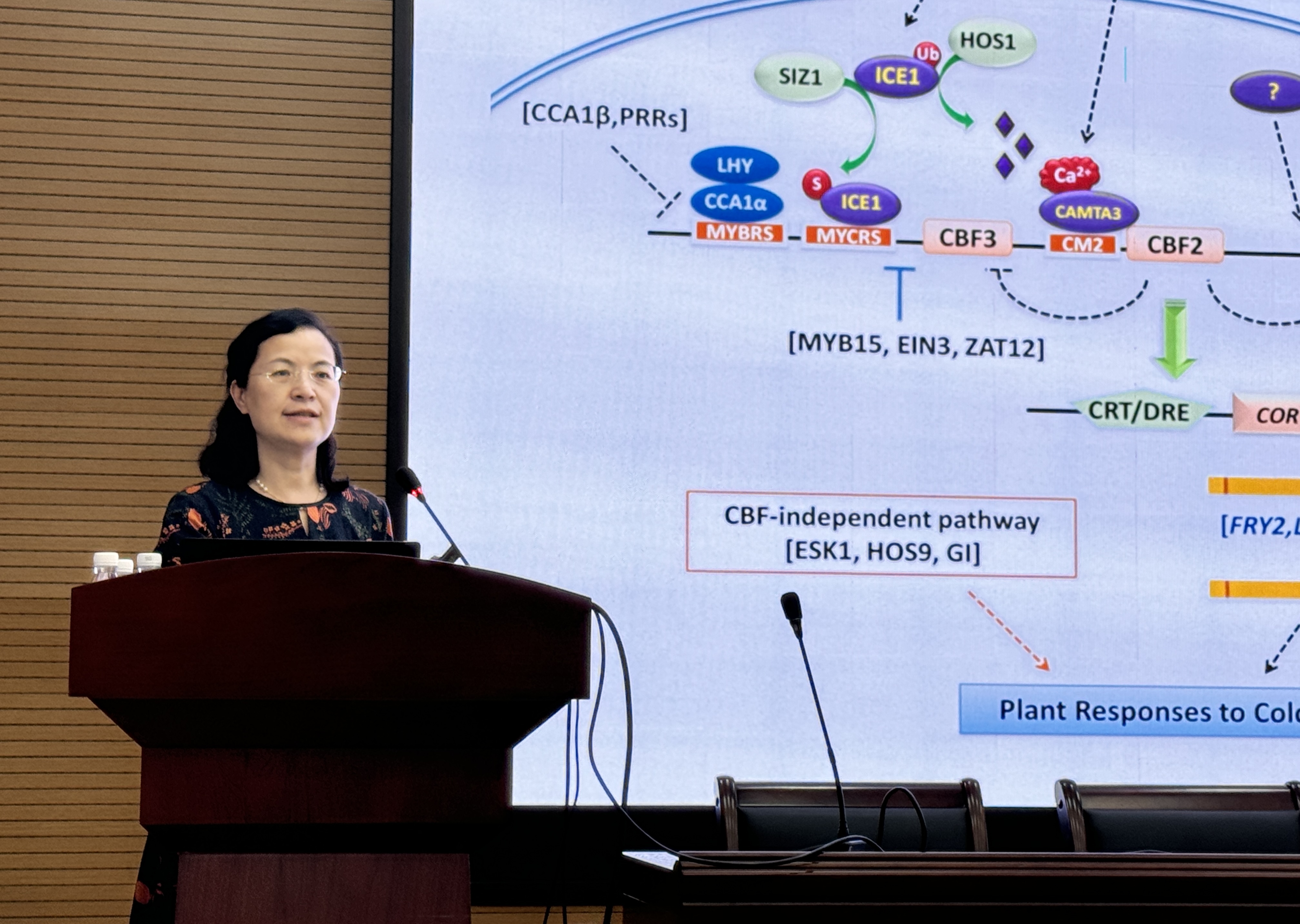 杨淑华的报告则以“植物响应低温胁迫的分子机制”为主题,聚焦植物响应低温胁迫信号的分子机制,为我们开启深入了解植物抗寒机制的知识之门。她结合自身研究成果,详细讲解了低温信号在细胞内的传导机制,对植物在低温环境下复杂而精妙的信号响应体系进行了剖析。