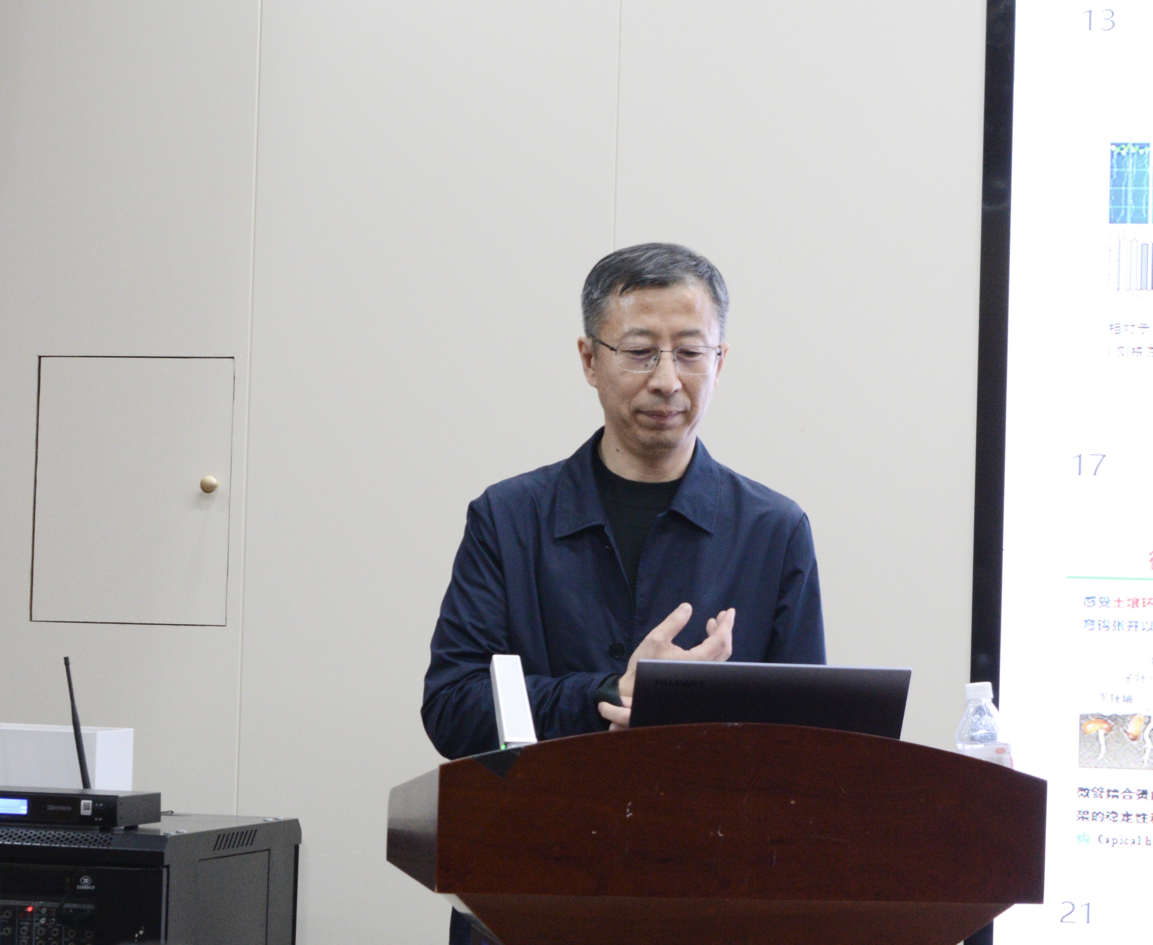 毛同林教授主要从事植物细胞骨架的研究,本次报告聚焦于植物细胞骨架领域的最新研究进展,特别强调了微管结合蛋白在调控植物细胞形态和功能中的关键作用。他详细介绍了微管结合蛋白如何影响植物的细胞极性生长、气孔运动以及侧根发育,这些过程对植物的生长发育和抗旱性具有重要意义。