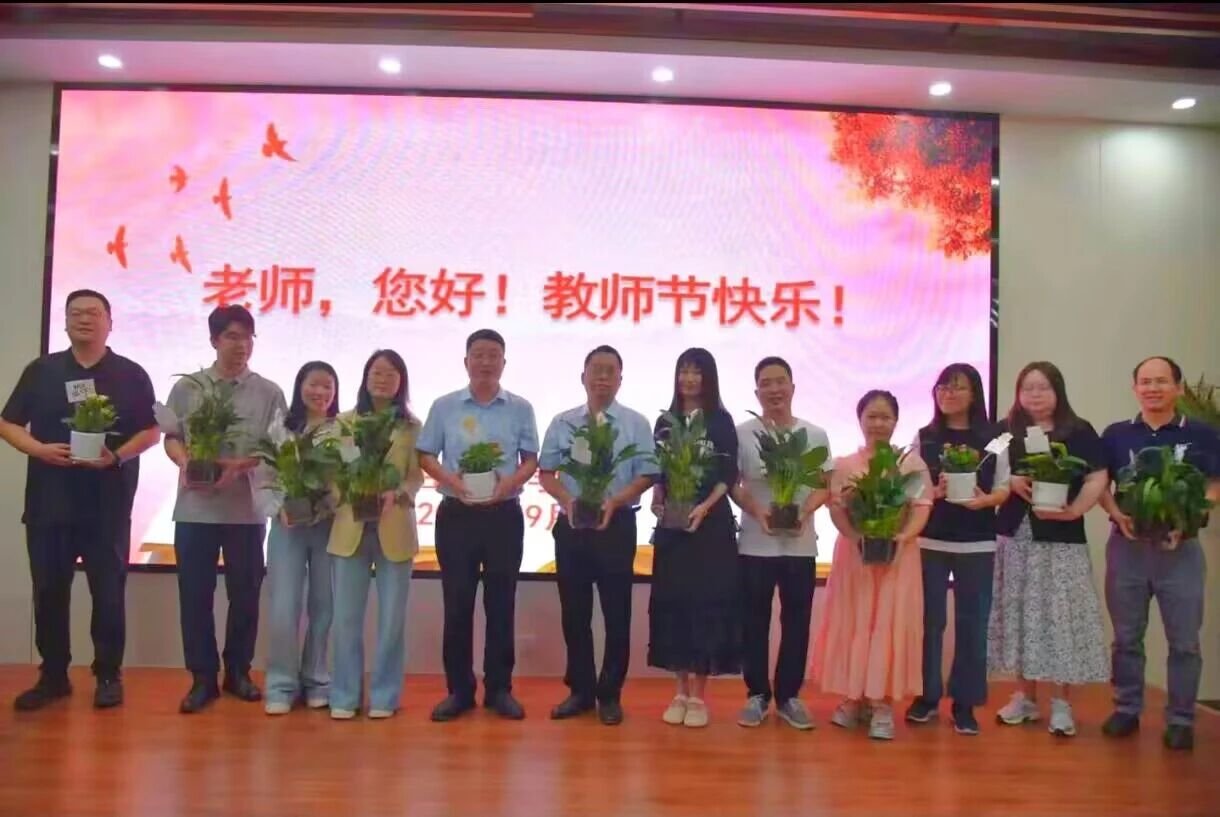 各系工会组长带领学生代表前往各系老师办公室开展以“喜迎教师节,绿植映满院”为主题的教师节献花活动。学生们亲手将绿植和贺卡送至老师手中,并与老师亲切交流。