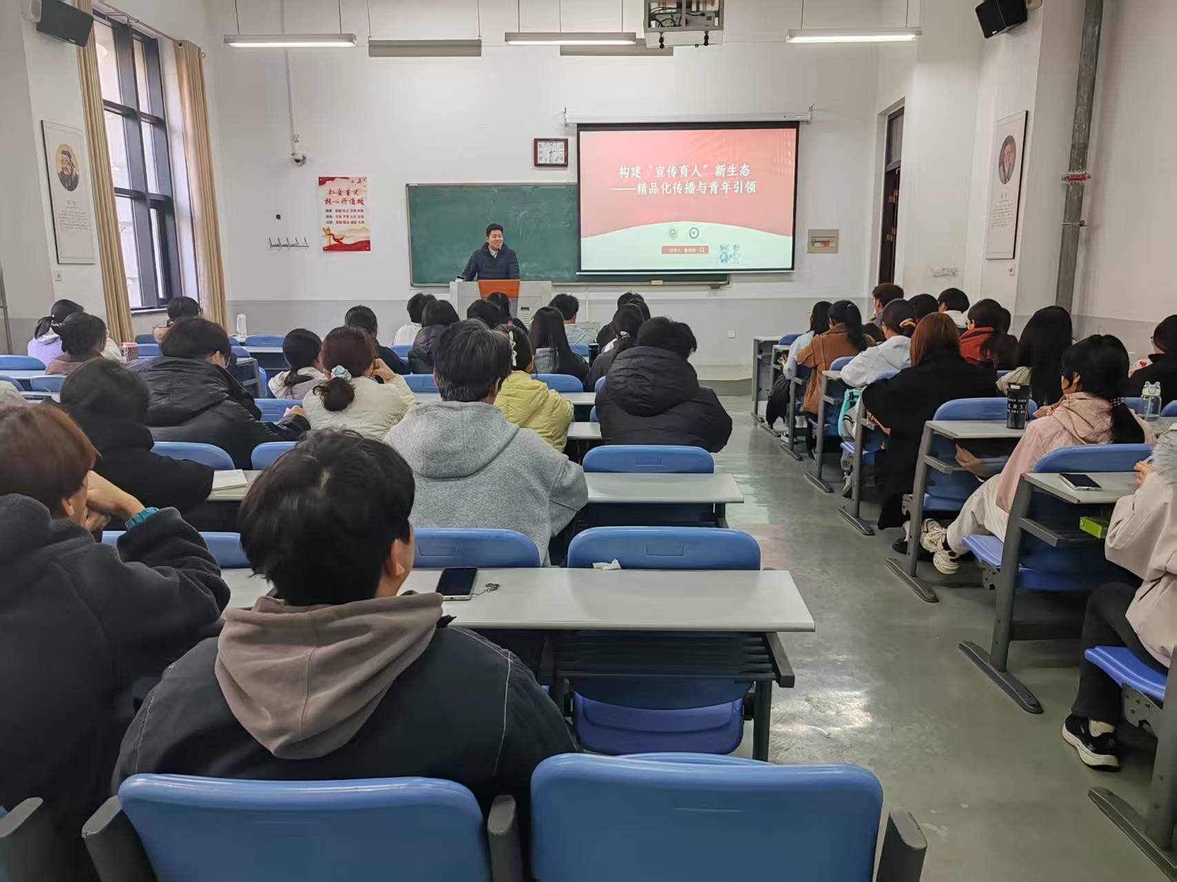 培训会开始后,董瑞林讲述了自己工作中的亲身经历,围绕“宣传育人”新生态展开讲述,强调宣传工作应从事务性工作提升至三全育人的战略高度,注重系统性、生长性与引领性。同时,他指出宣传不仅是信息的传递,更是思政育人的重要抓手,关键在于塑造形象、引领青年。